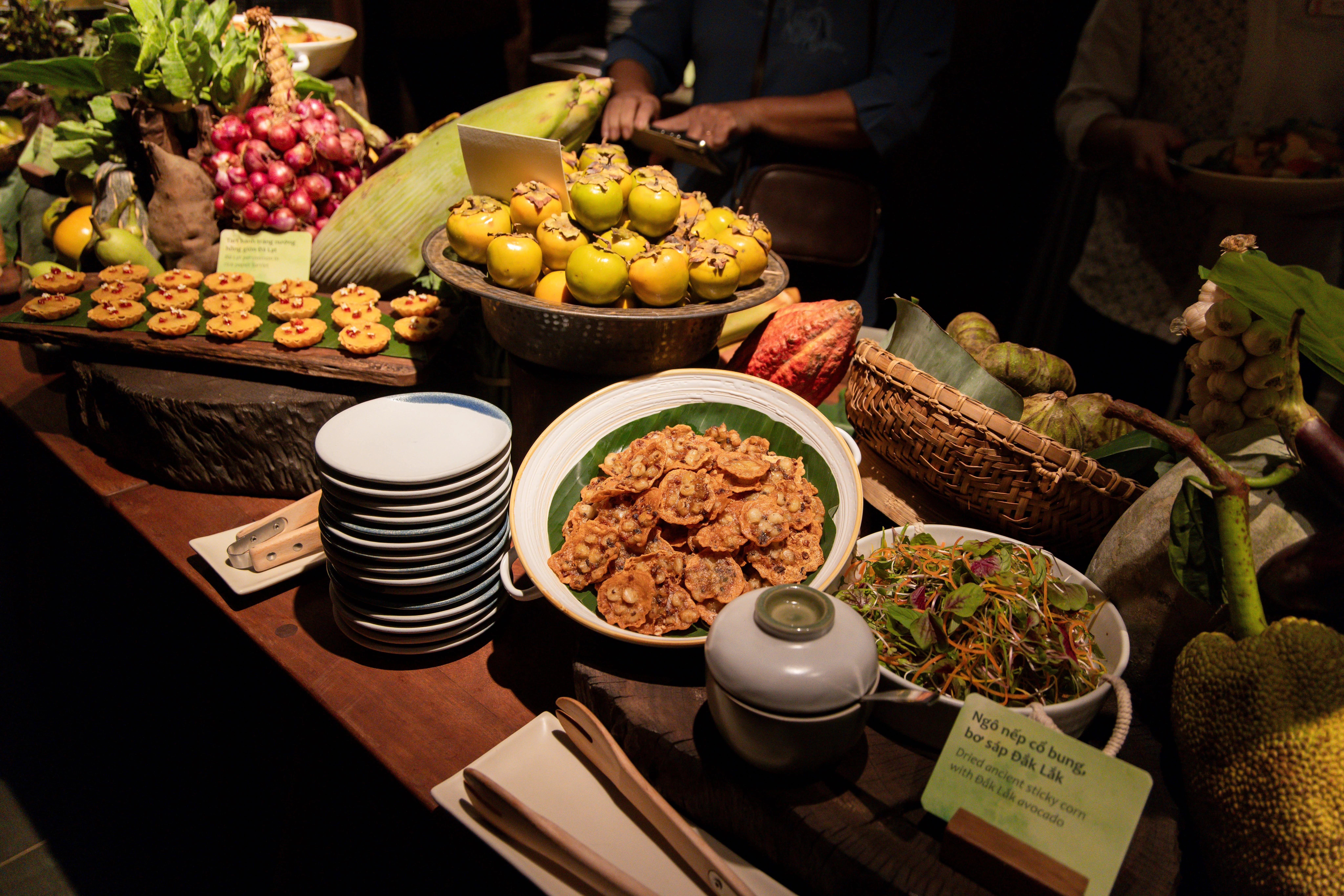 Tất cả những nông sản ấy được đội ngũ đầu bếp Hum dày công sáng tạo thành hơn 30 món mỹ vị thực vật thanh lành cùng các thức uống hấp dẫn, mang đến những khám phá thật thi vị với trải nghiệm vừa gần gũi vừa mới mẻ cả trong hương vị, cảm xúc và đôi khi gợi nhớ những ký ức đẹp nơi quê nhà. Tại mỗi quầy ẩm thực, các đầu bếp, chuyên gia và nghệ ẩm thực cùng chia sẻ về đặc trưng của nguyên liệu, về vùng đất cũng như câu chuyện ấp ủ, nguồn cảm hứng sáng tạo đằng sau mỗi hương vị được giới thiệu đến thực khách.