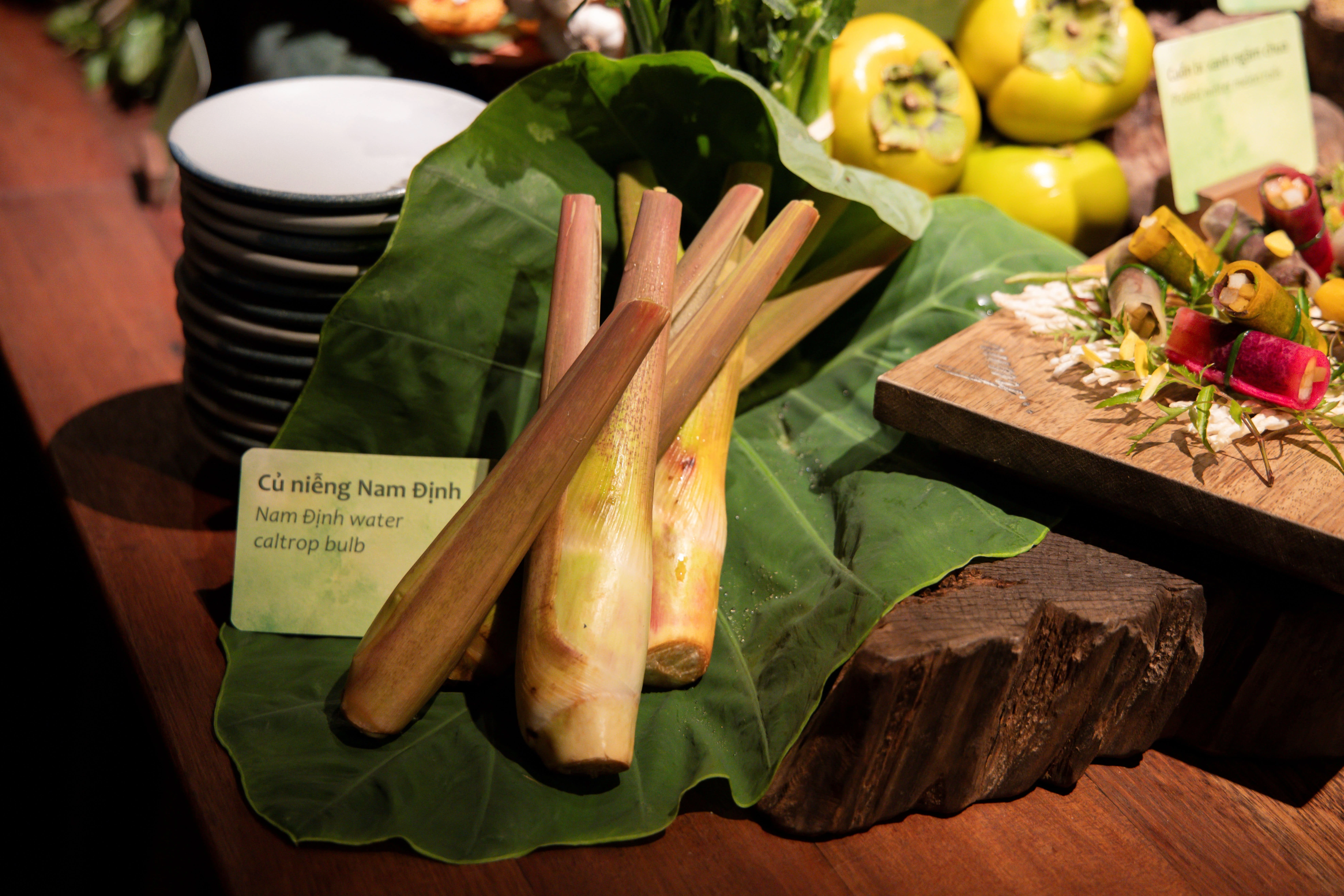 Một món ăn mang phong vị thu của vùng đất Nam Định chính là Nộm cũ niễn Nam Định. Anh Lê Thiện, Bếp trưởng của Hum Thảo Điền chia sẻ: “Củ niễng là loại rau củ đặc trưng của mùa thu, giòn ngọt và thanh mát. Cho loại nguyên liệu mới này, bếp Hum đã biến tấu củ niễng thành món nộm. Sự kết hợp này mang đến hương vị mới mẻ, vừa giữ được độ giòn tươi tự nhiên vừa đậm đà với gia vị chua ngọt hài hòa.”