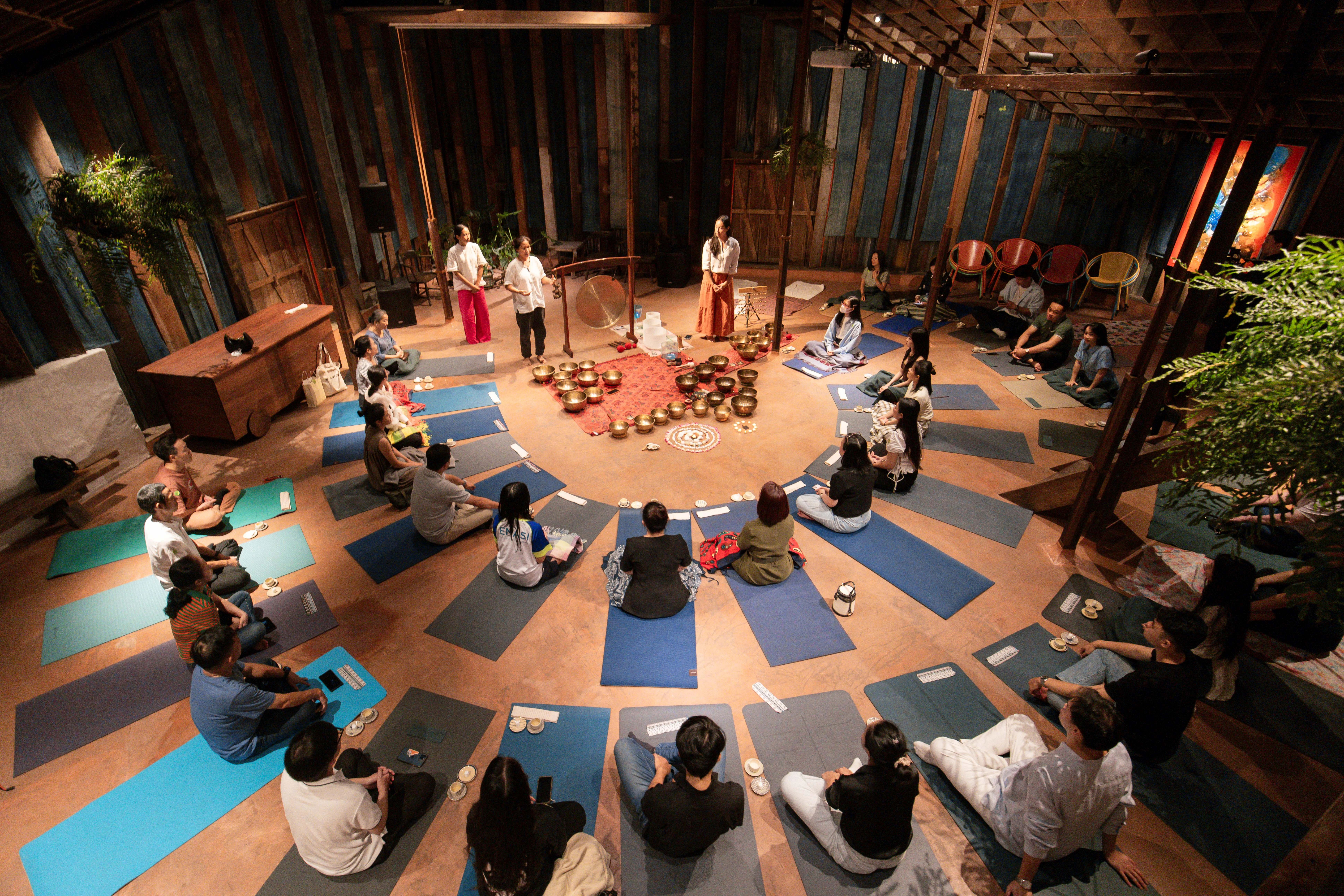 Cùng với ẩm thực, sự kiện ‘Nông Sản Quê Nhà – Thu’ còn dàng tặng khách tham dự với trải nghiệm Thiền Chuông Xoay thư giãn từ đối tác Omandala (Hội An). Đây là liệu pháp bằng âm thanh của chuông xoay cộng hưởng tạo nên nhịp điệu, đi sâu vào cơ thể để hỗ trợ cho sức khoẻ thân tâm trí và nhiều khía cạnh khác trong cuộc sống hiện đại, như giải phóng cảm xúc, cân bằng nhịp thở, xoa dịu các cơn đau và hỗ trợ sáng tạo, như một cách nuôi dưỡng tâm hồn với tinh thần: ‘sự tĩnh tại đến từ bên trong’ mà Hum luôn mong muốn chia sẻ và kết nối. Tham khảo menu của Hum tại đây.