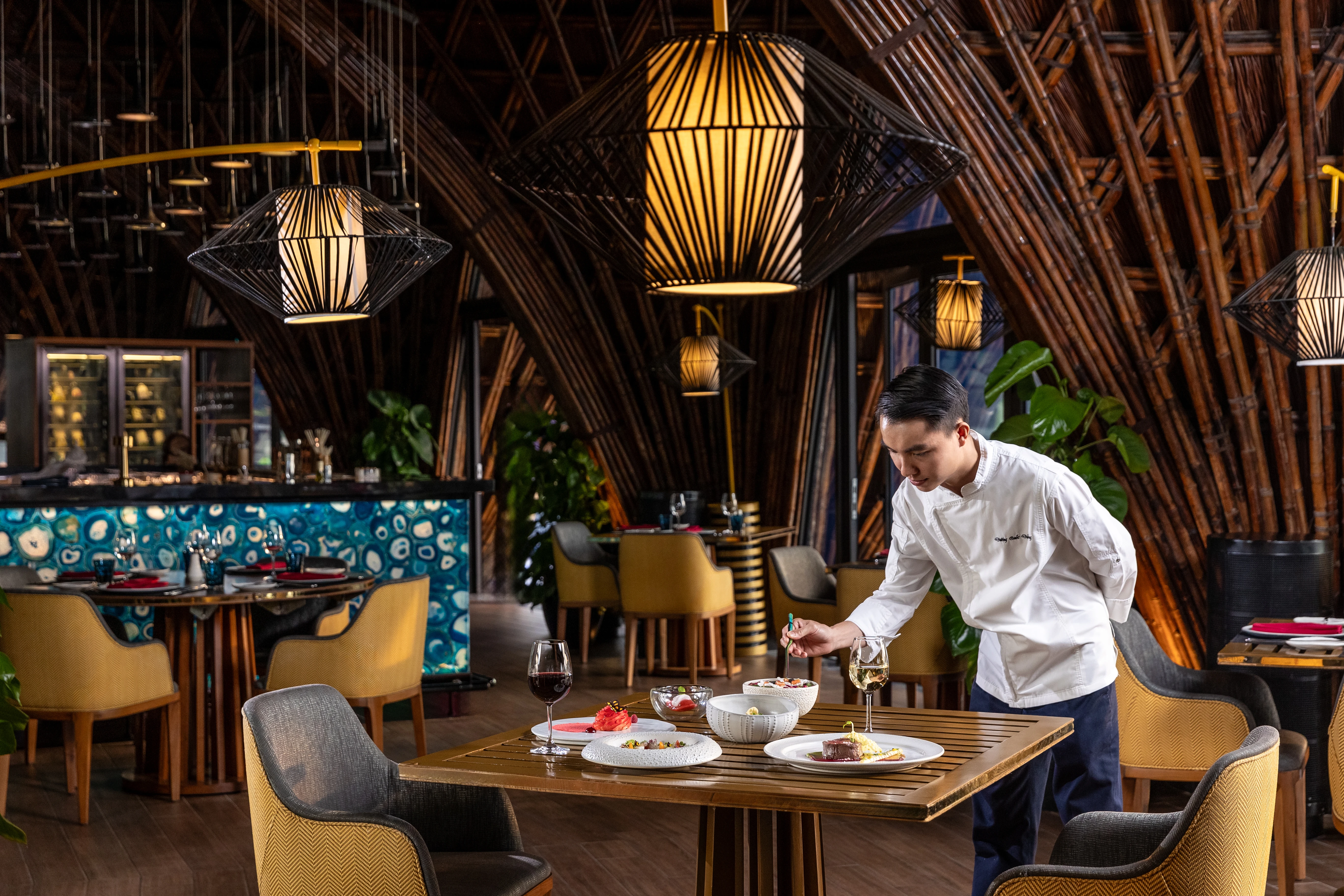 Nổi bật với những mái vòm bằng tre nhấp nhô trên cát, LAVA được thực khách biết đến như linh hồn của ẩm thực cao cấp tại InterContinental Phu Quoc. Sang trọng và thanh lịch, độc đáo và ấn tượng, thực đơn tại LAVA mở ra cuộc đối thoại giữa than hồng và biển cả, nơi hơi nóng biến hải sản tươi thành mĩ vị tinh tế, mang theo nhiều tầng hương vị, cảm xúc và chiều sâu.