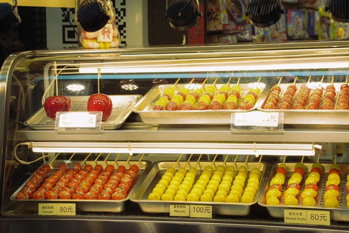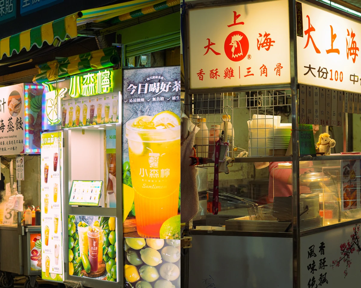 Ngay từ cửa ngõ, thị giác của du khách sẽ bị choáng ngợp bởi hàng nghìn bảng hiệu neon rực rỡ đan xen dày đặc. Đó là sắc vàng óng ả của những tảng gà rán khổng lồ vừa nhấc ra khỏi chảo dầu, hay màu vàng quen thuộc của những ly trà sữa 50 Lan trứ danh. Điểm xuyết vào đó là sắc đỏ tươi rói từ những xiên dâu tây bọc đường (Tanghulu) hay những xe sạp lạp xưởng nướng lấp lánh dưới ánh đèn. Tất cả hòa quyện với dòng người tấp nập, tạo nên một bức tranh về nhịp sống đô thị "không ngủ".