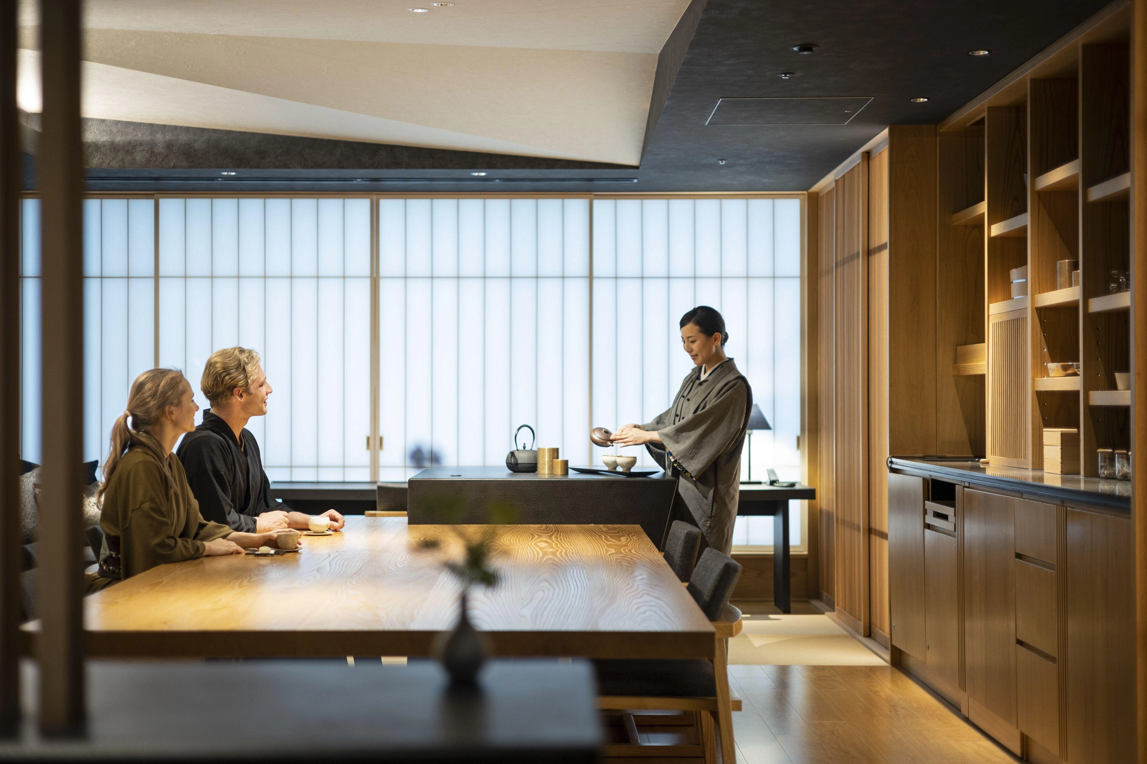 Sự tuyệt vời của Hoshinoya vượt xa tiêu chuẩn dịch vụ cao ngất ngưởng của các khách sạn cao cấp khác tại Nhật Bản. Hãy nghĩ đến những cái cúi chào khi bạn rời đi, lời chào và cuộc trò chuyện chính xác khi cần thiết, cùng bầu không khí thân thiện nhưng vẫn trang trọng, mang đến cảm giác gần gũi sâu sắc. Nhân viên toát lên vẻ thanh thản trong cách tiếp cận khách hàng, điều được cho là được thiết kế để đưa bạn thoát khỏi sự ồn ào náo nhiệt của Tokyo và hòa mình vào thế giới tại Hoshinoya.
