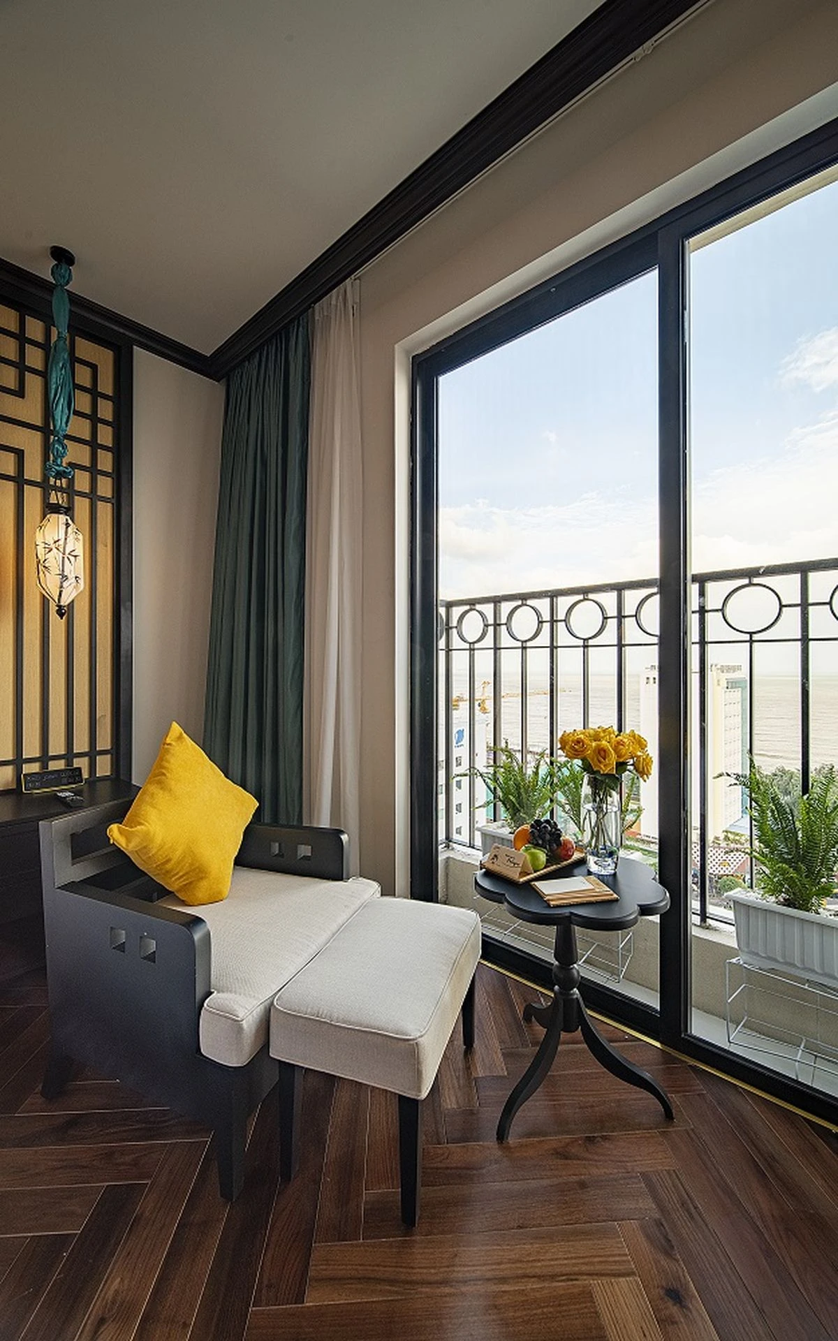Một điểm yêu thích khác của chúng tôi là phòng nghỉ tại Potique rộng rãi, tông màu trung tính thanh nhã, ánh sáng tự nhiên tràn ngập và hương tinh dầu thoang thoảng khiến ai cũng cảm thấy thư thái ngay khi mở cửa bước vào. Đặc biệt là căn phòng của chúng tôi có ban công hướng biển, chỉ cần kéo rèm là đã thấy cả đại dương xanh thẳm ngoài xa.