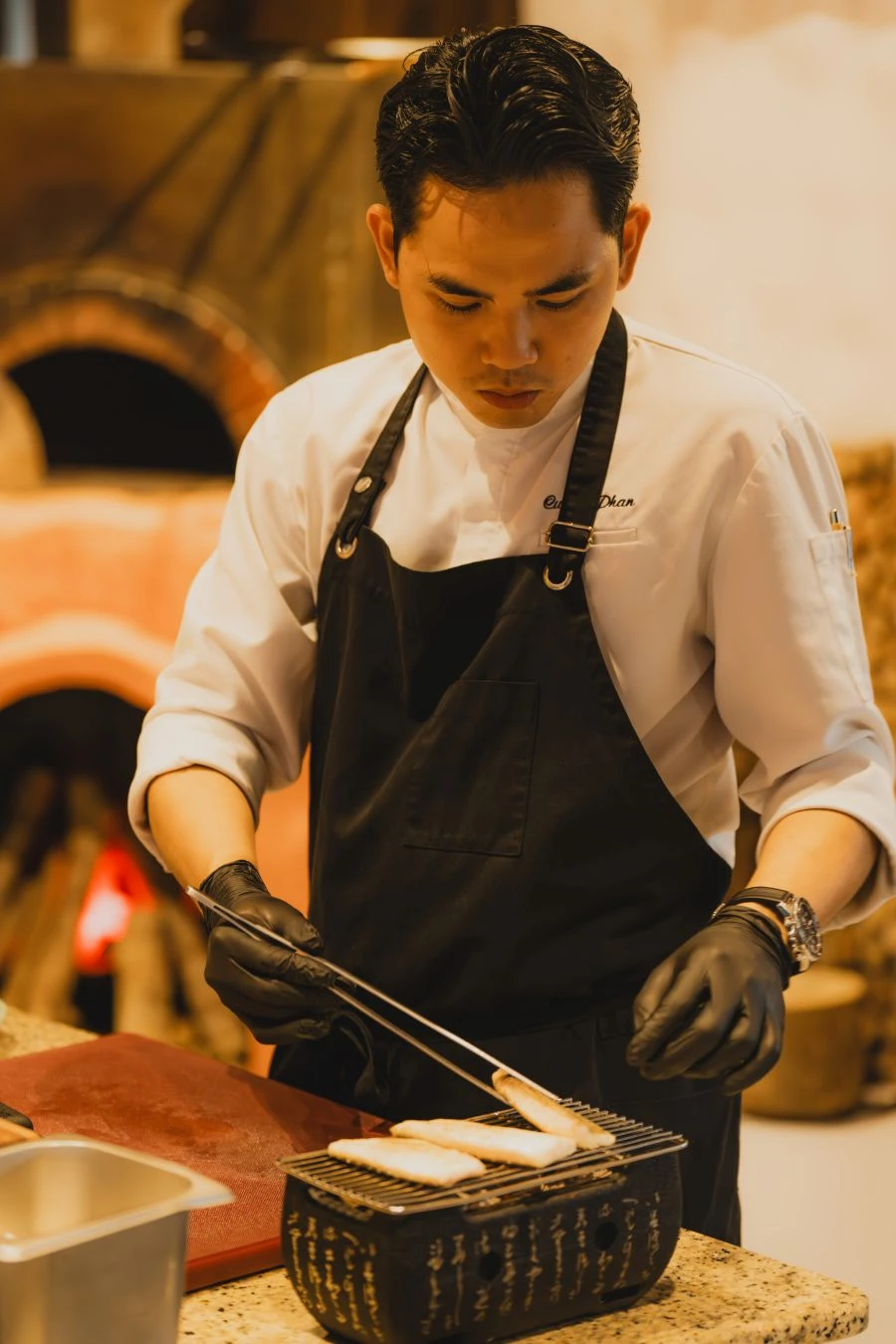 Hành trình ẩm thực này được chia thành năm chương, sử dụng nguyên liệu từ khu vườn tại chỗ và các đối tác địa phương tin cậy lâu năm. Chef de Cuisine Phan Cường - người đồng hành cùng thực khách bắt đầu buổi tối: “Thực đơn khơi mở hành trình khám phá nguồn hải sản tươi ngon của vịnh Ninh Vân, hoa màu bản địa và một sự kết hợp đầy thú vị với bò Wagyu Nhật Bản”