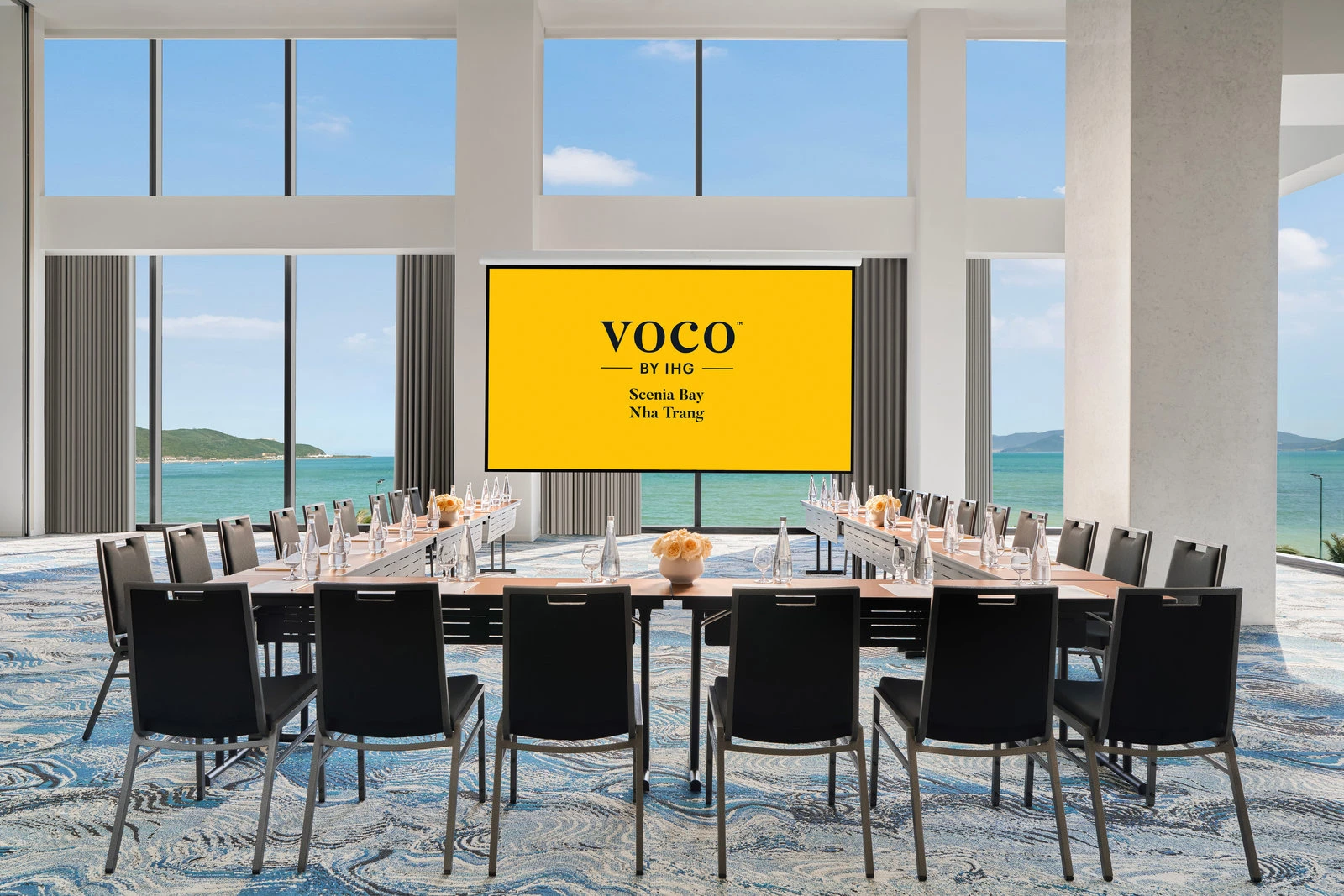 Không gian sự kiện của voco Scenia Bay Nha Trang ngập tràn ánh sáng tự nhiên, với tầm nhìn hướng biển, mang đến không gian lý tưởng cho các hội nghị doanh nghiệp, buổi gặp gỡ, tiệc cưới và những sự kiện riêng tư