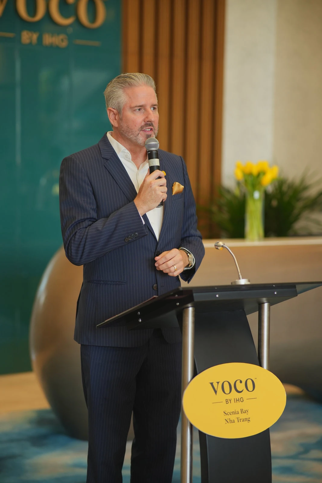 Ông Justin Malcolm, Tổng Quản lý khách sạn voco Scenia Bay Nha Trang by IHG, phát biểu trong lễ ra mắt