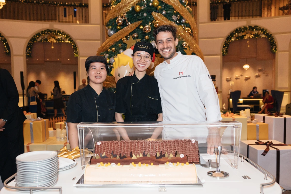 Đầu bếp bánh ngọt danh tiếng Robin Moquet đã chủ trì nghi thức cắt Logcake với các hương vị độc đáo ginger bread bánh gừng, hạt hồ đào và xoài, và sô-cô-la và va-ni-la, gửi gắm lời chúc về một mùa lễ hội ngọt ngào và sung túc.