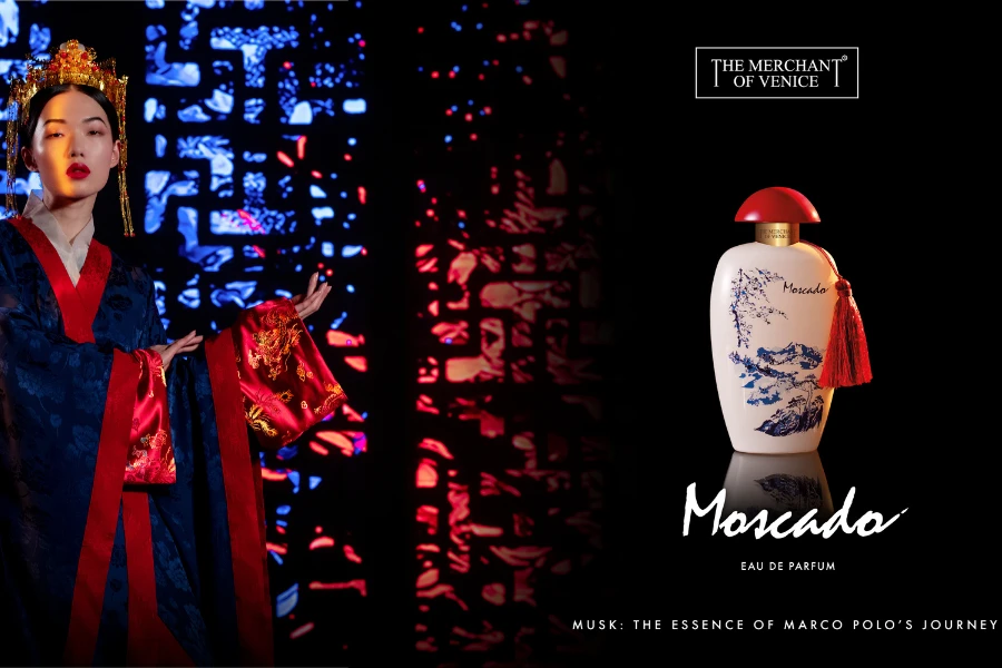 Moscado lại là sắc màu nóng hơn, mở đầu với Cam Ý và Tiêu Hồng, rồi bùng nở cùng Hoa Hồng Bungaria và Trầm Hương. Nốt cuối Đậu Tonka và Nhũ Hương mang lại cảm giác sang trọng, đậm chất Venice cổ điển.