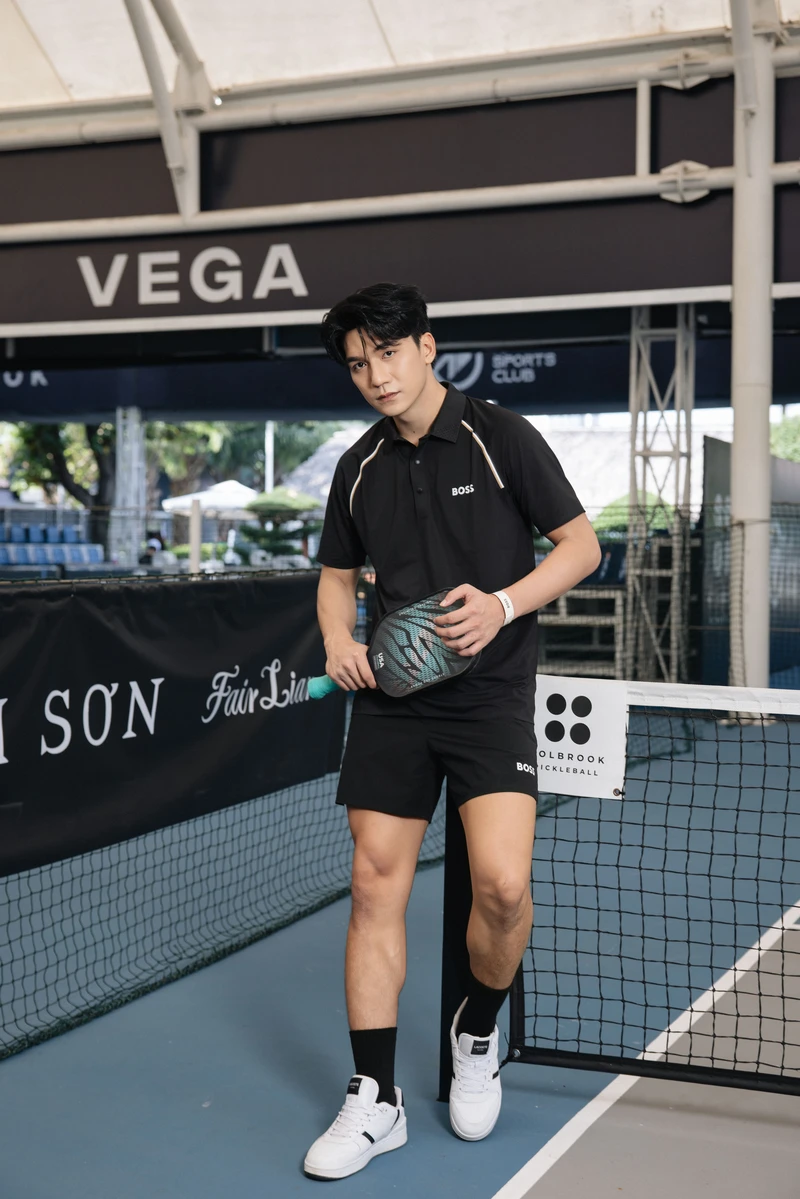 Diễn viên Đỗ Nhật Hoàng cũng tham gia cuộc vui, diện trang phục thể thao tông đen tối giản từ nhà mốt BOSS