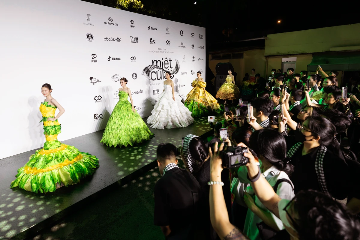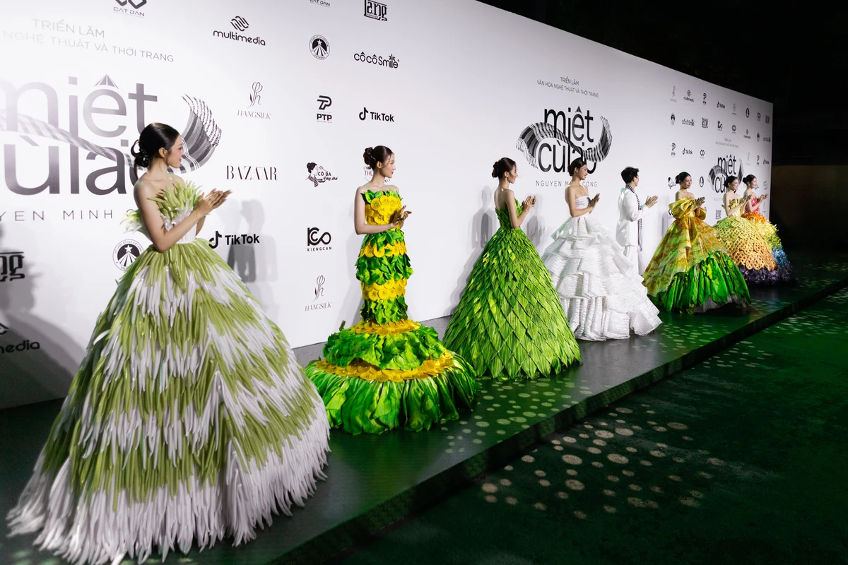 Đêm khai mạc trở thành điểm hẹn của giới nghệ thuật và thời trang, nơi quy tụ hàng trăm người đẹp và nghệ sĩ hàng đầu showbiz Việt góp mặt như Phương Khánh, Lương Thùy Linh, Khánh Vân, Ngọc Châu, Thu Trang, Quỳnh Anh… những gương mặt góp phần làm nên bức tranh thăng hoa của triển lãm “Miệt Cù Lao”.
