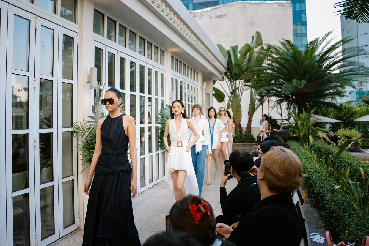 Dàn người mẫu sải bước giữa không gian “tropical resort” tái hiện tinh thần phóng khoáng, nhẹ nhàng nhưng vẫn sang trọng và thanh lịch của SUMMER DAWN’ 26.