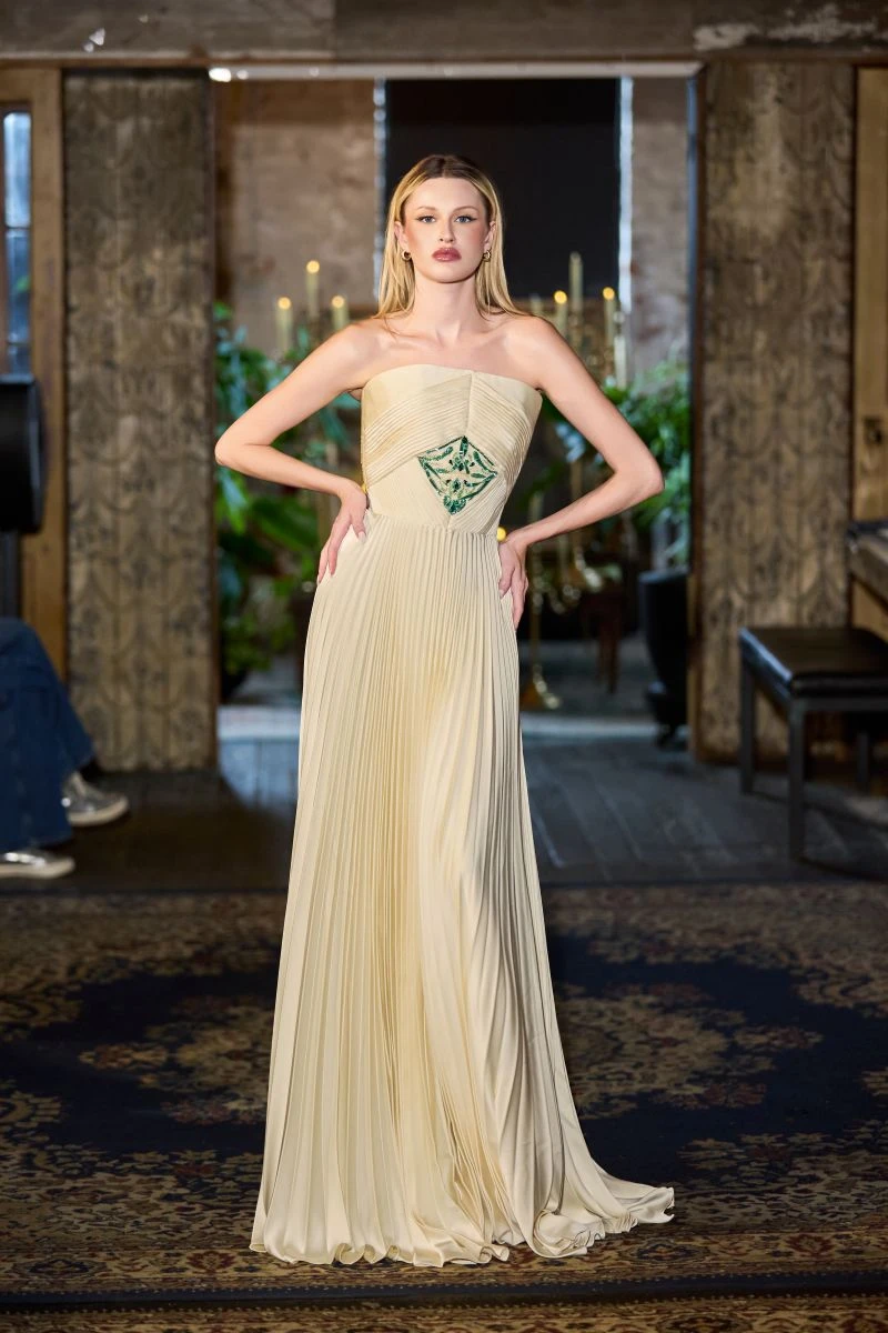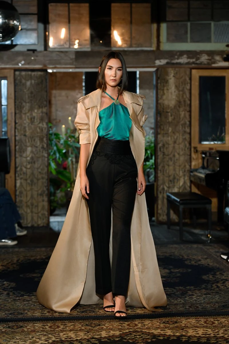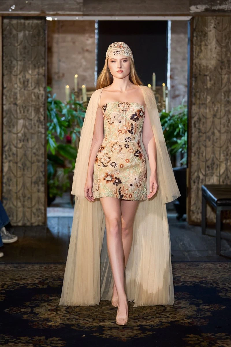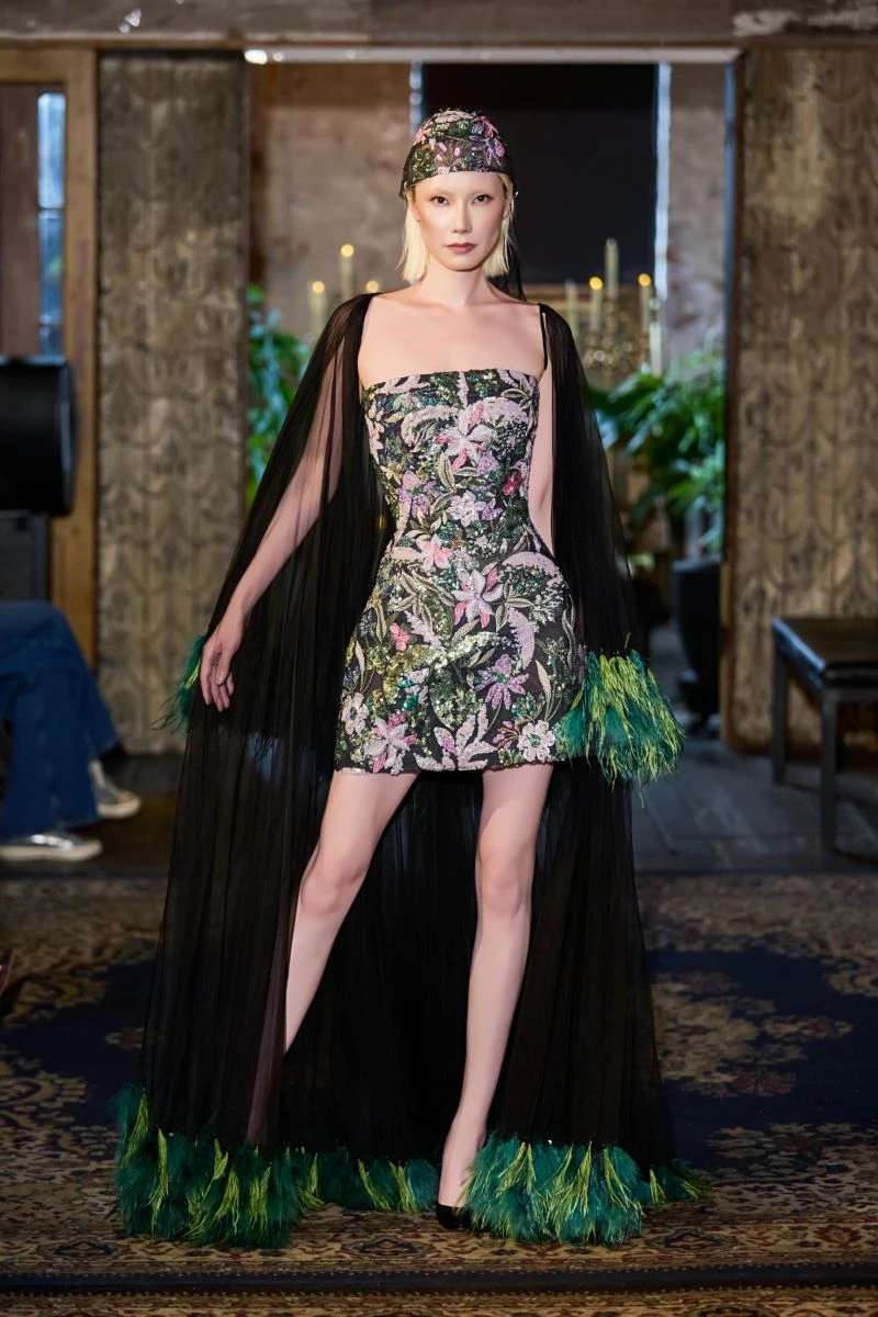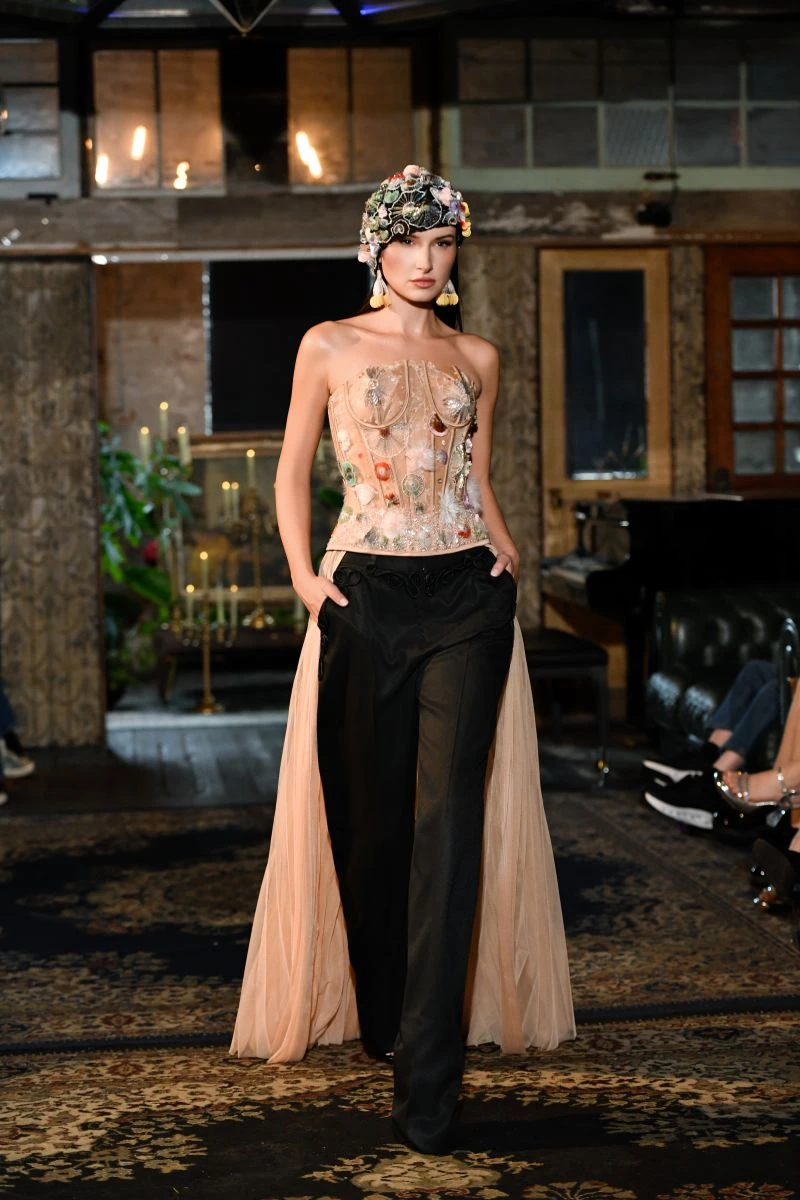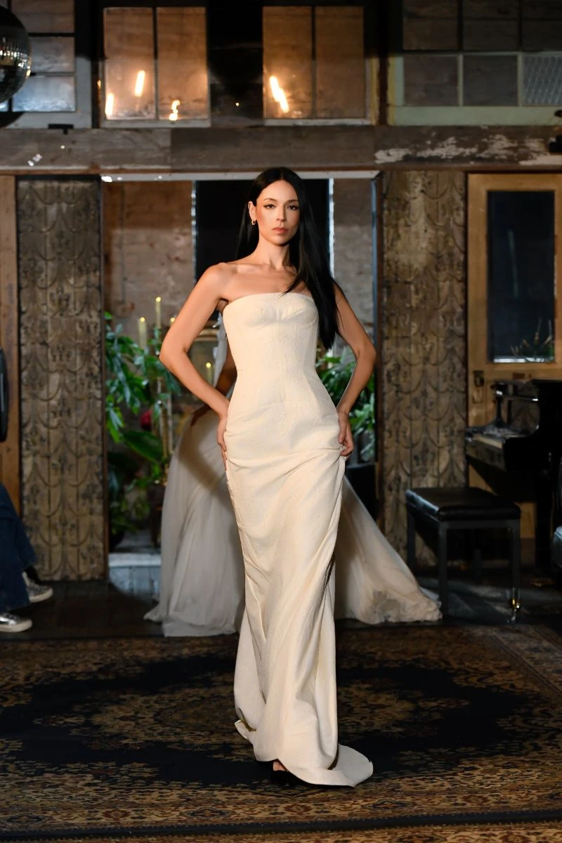 Khi những thiết kế xuất hiện trên sàn diễn, bao trùm khán vòng là một khung cảnh lãng mạn, đầy nghệ thuật, mang lại một sự tương phản thú vị với vẻ hiện đại, sôi động của thành phố New York.