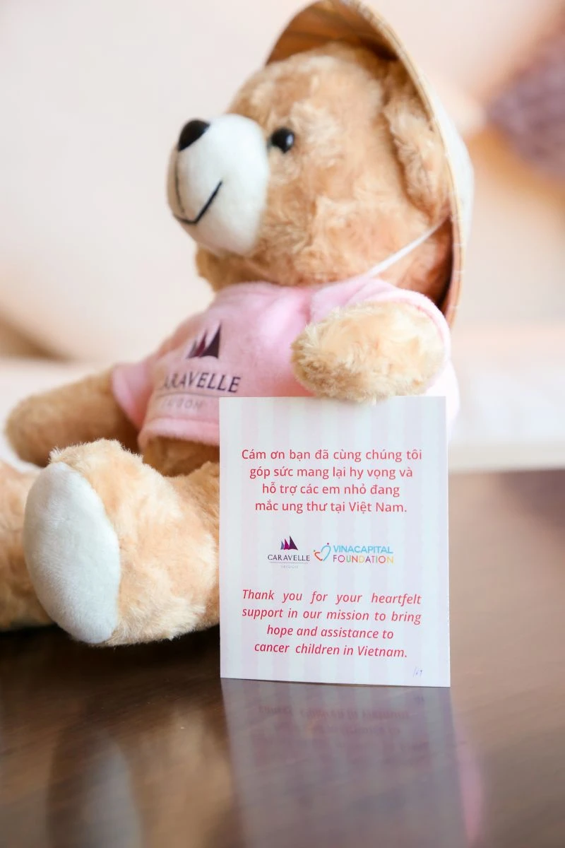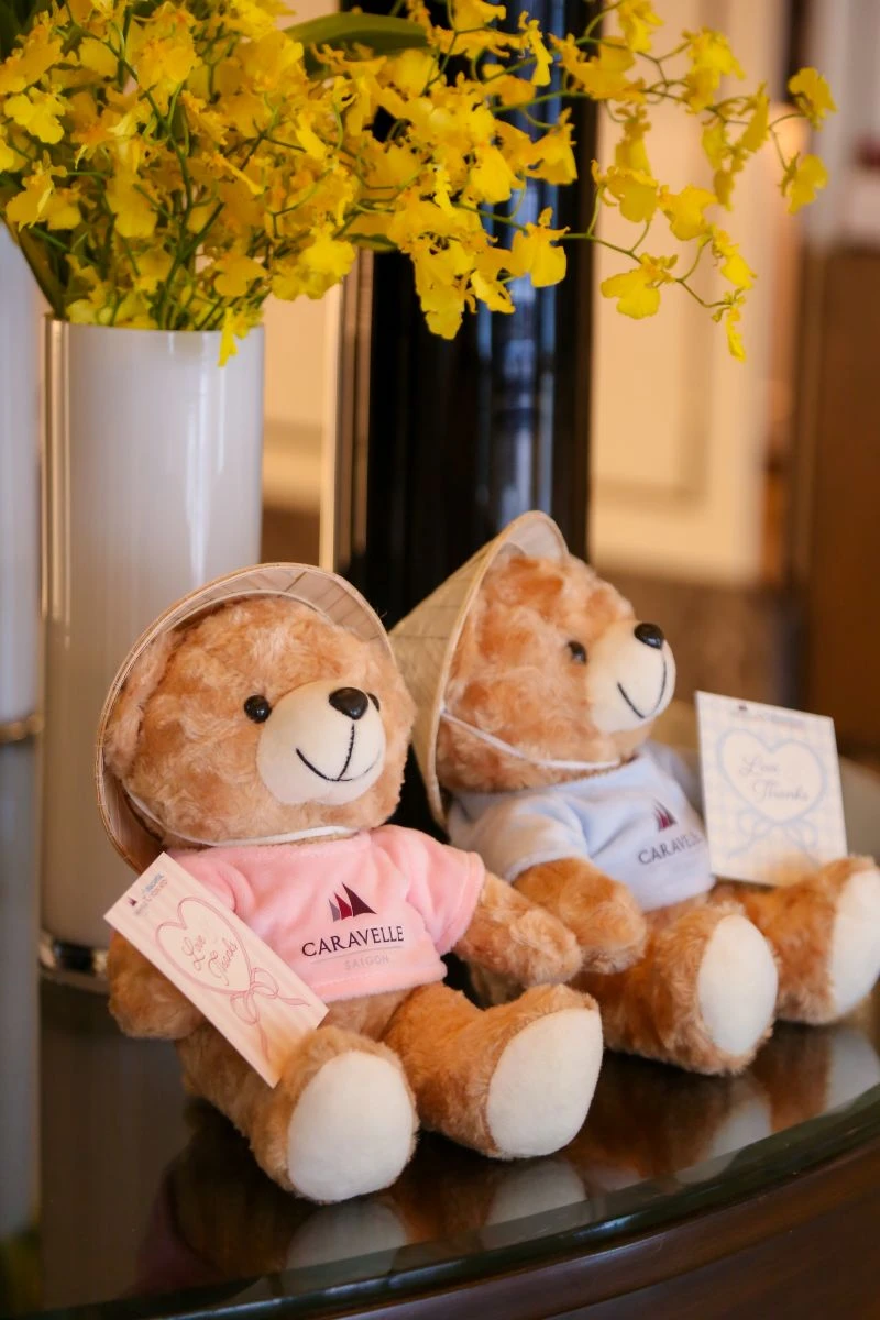 Quý khách có thể tìm thấy những chú Gấu Teddy Caravelle tại sảnh khách sạn trong suốt mùa lễ hội. Khi đón một chú Gấu về nhà, Quý khách không chỉ có thêm một người bạn nhỏ đáng yêu, mà còn gửi đi thông điệp yêu thương và niềm hy vọng đến những em nhỏ đang chống chọi với bệnh tật.