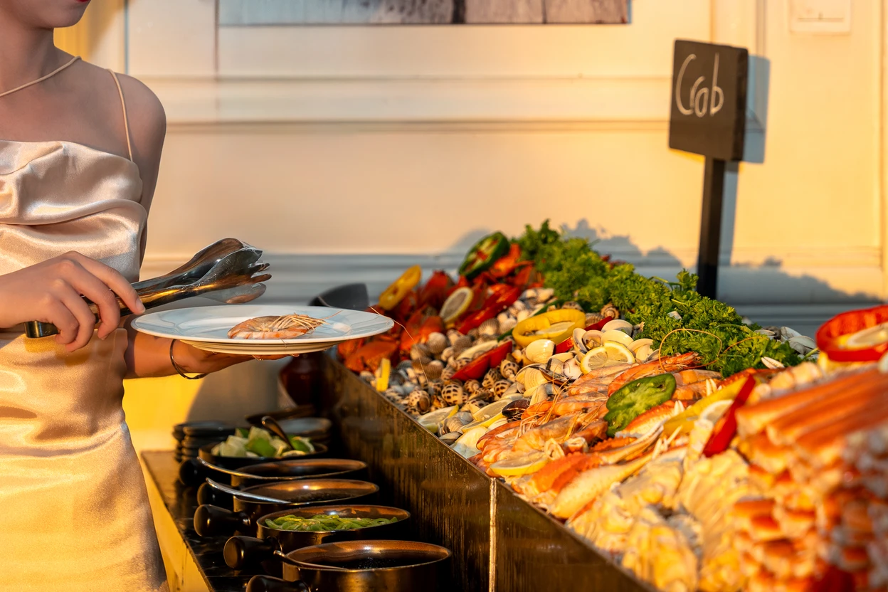 Đón chào mùa lễ hội đong đầy cảm xúc, lịch trình ẩm thực phong phú hứa hẹn mời thực khách thưởng thức những hương vị khơi gợi sự gắn kết. Từ các buổi buffet quốc tế đa sắc màu, hải sản tươi ngon của Phú Quốc đến những món đặc biệt theo mùa, mỗi trải nghiệm đều được thiết kế để tăng thêm sự sẻ chia và lan tỏa niềm vui. Các buổi buffet mừng Giáng Sinh và Năm Mới đặc sắc với món chính mang dấu ấn đặc trưng mùa lễ cùng thực đơn tráng miệng thủ công tinh xảo, quyến rũ từ ánh nhìn đến vị giác, biến mỗi món ăn thành một câu chuyện lễ hội riêng đầy thi vị.