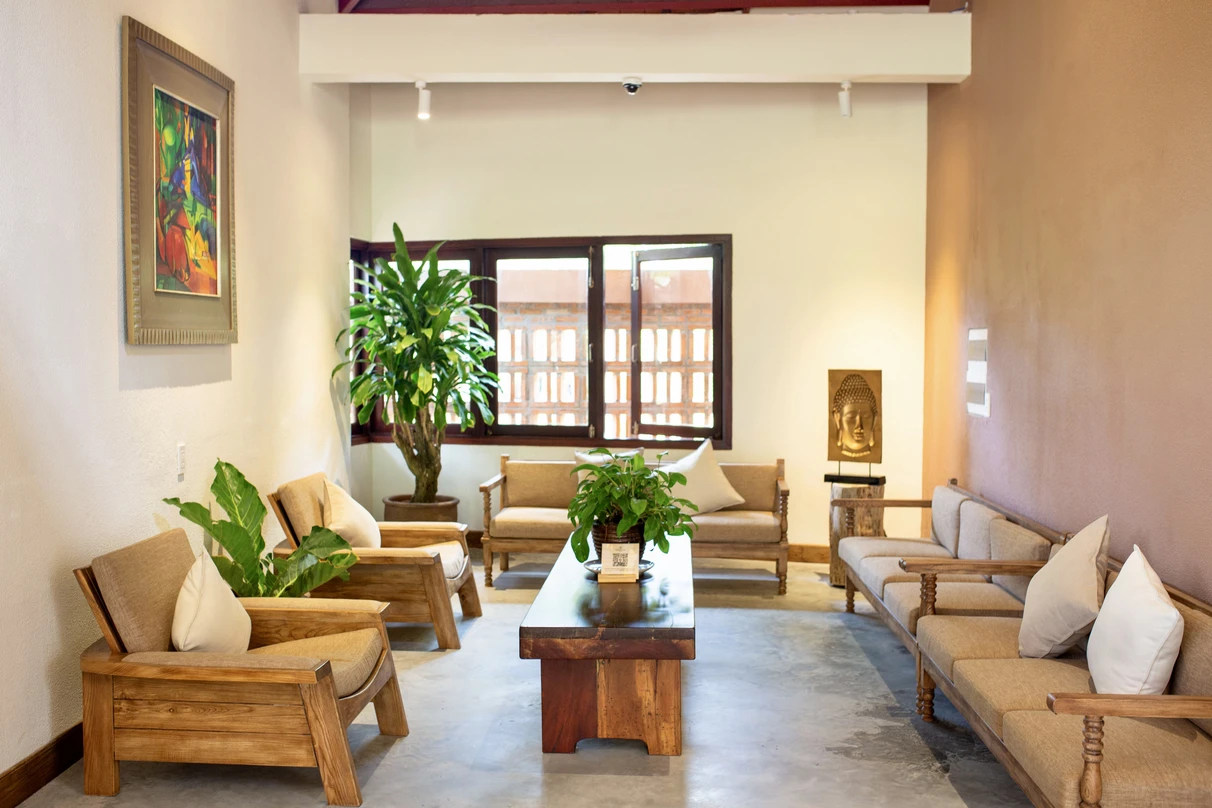 Lấy cảm hứng từ kiến trúc Chăm cổ, Hibiscus Spa mang trong mình vẻ đẹp mộc mạc mà tinh tế – nơi những đường cong mềm mại, hoa văn truyền thống và gam màu ấm áp hòa quyện tạo nên một không gian đầy nghệ thuật. Ánh nắng nhẹ nhàng len lỏi qua những khe gạch thẻ, đan xen cùng sắc xanh của tán lá, mang đến cảm giác gần gũi với thiên nhiên. Trong không gian ấy, tiếng sóng biển rì rào bên tai, hương thảo mộc tươi mát thoảng qua trong gió – tất cả cùng hòa quyện tạo nên một không gian chữa lành trọn vẹn.