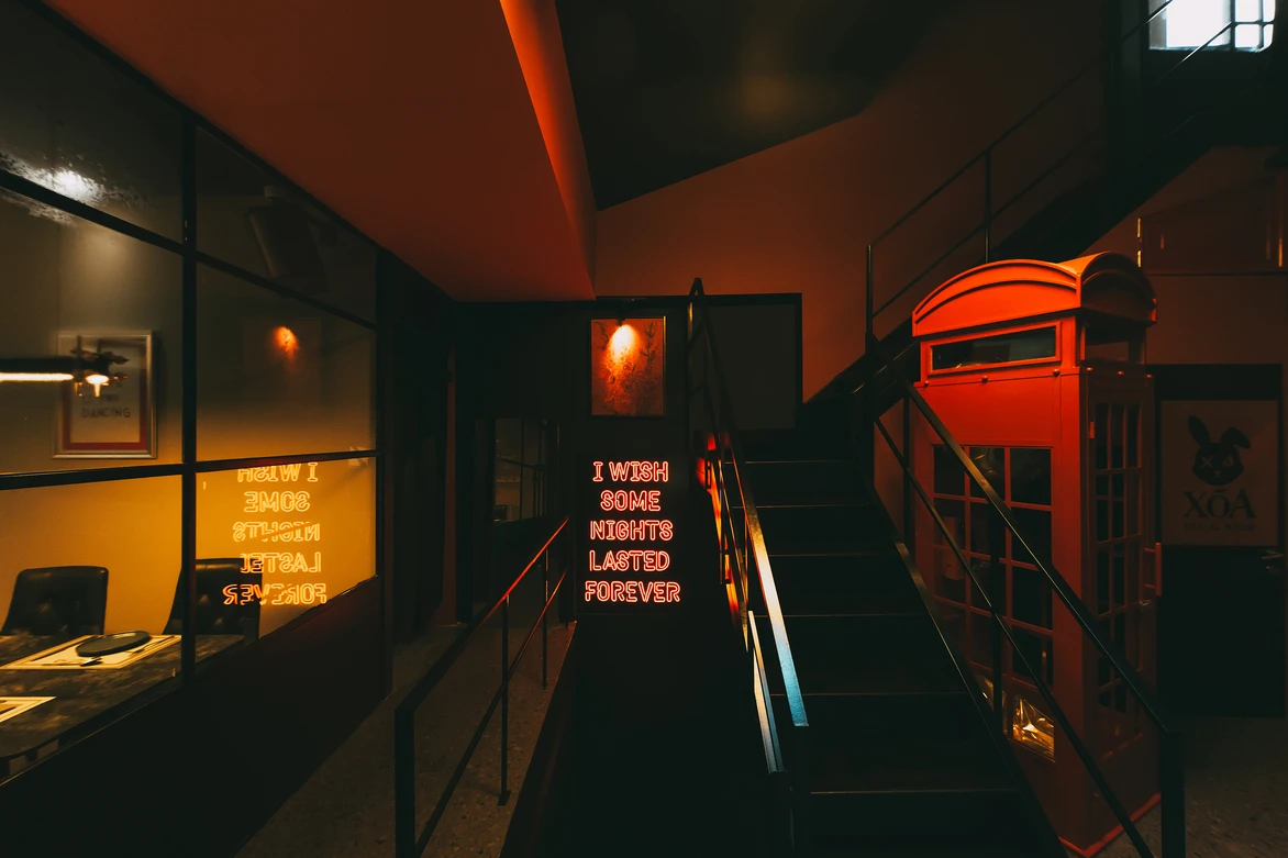 Giữa trung tâm quận 1 (cũ), đối diện toà nhà Bitexco – biểu tượng của Sài Gòn, một không gian mới đang nổi lên: XõA Social Room. Ngay từ lối vào, XõA đã khéo léo dẫn các vị khách qua một hẻm nhỏ mộc mạc, như thể đang rời khỏi phố xá rực rỡ, náo nhiệt để tiến vào cả một thế giới nghệ thuật và tiệc tùng – sự tương phản biến đổi thú vị!
